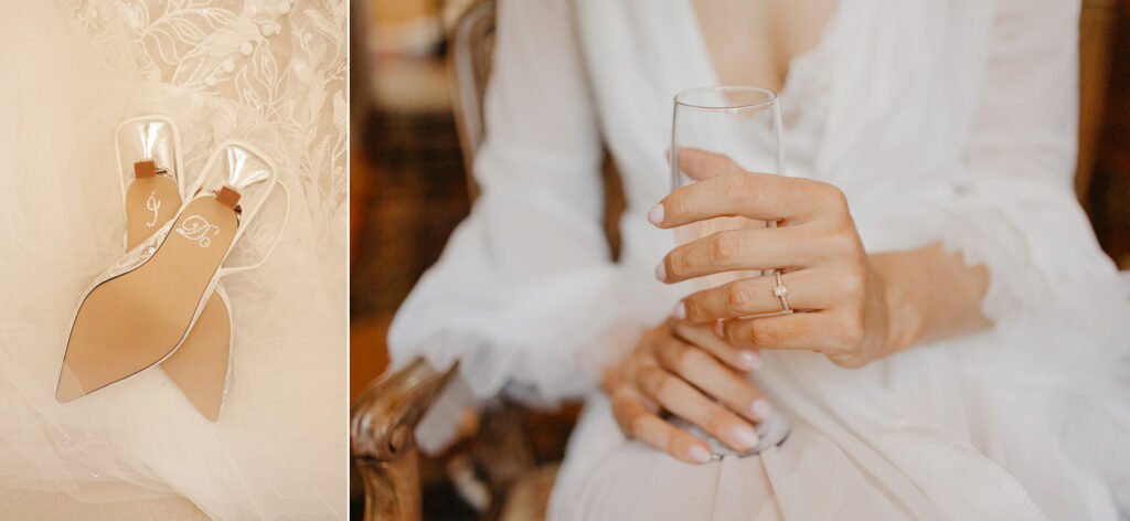 Autre idée originale d’accessoire de mariage : personnaliser ses semelles, pour rendre ses chaussures de mariées uniques. Qu’il s’agisse d’ajouter des strass délicats trouvés sur Etsy ou d’écrire à la main un mot destiné à sa moitié, cette attention transforme une simple paire de chaussures en un véritable talisman. C’est une présence invisible qui marche avec vous à chaque pas. Écrire quelques mots, une date ou un message secret permet d’accompagner symboliquement l’autre jusqu’à la cérémonie.
