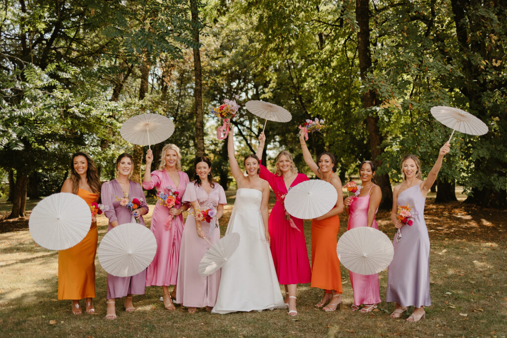 Les ombrelles en papier font partie des idées originales pour accessoiriser votre mariage. Elles allient pratique et esthétique. Pour un mariage à Bordeaux en été, elles permettent aux invités de profiter des espaces extérieurs, sans subir la chaleur ni l’exposition directe au soleil. Au-delà de leur utilité, les ombrelles sont surtout incroyablement belles en photo. Elles apportent une touche originale et graphique. Elles créent des jeux d’ombre et de lumière et transforment un moment ordinaire en scène visuelle joyeuse et vivante !